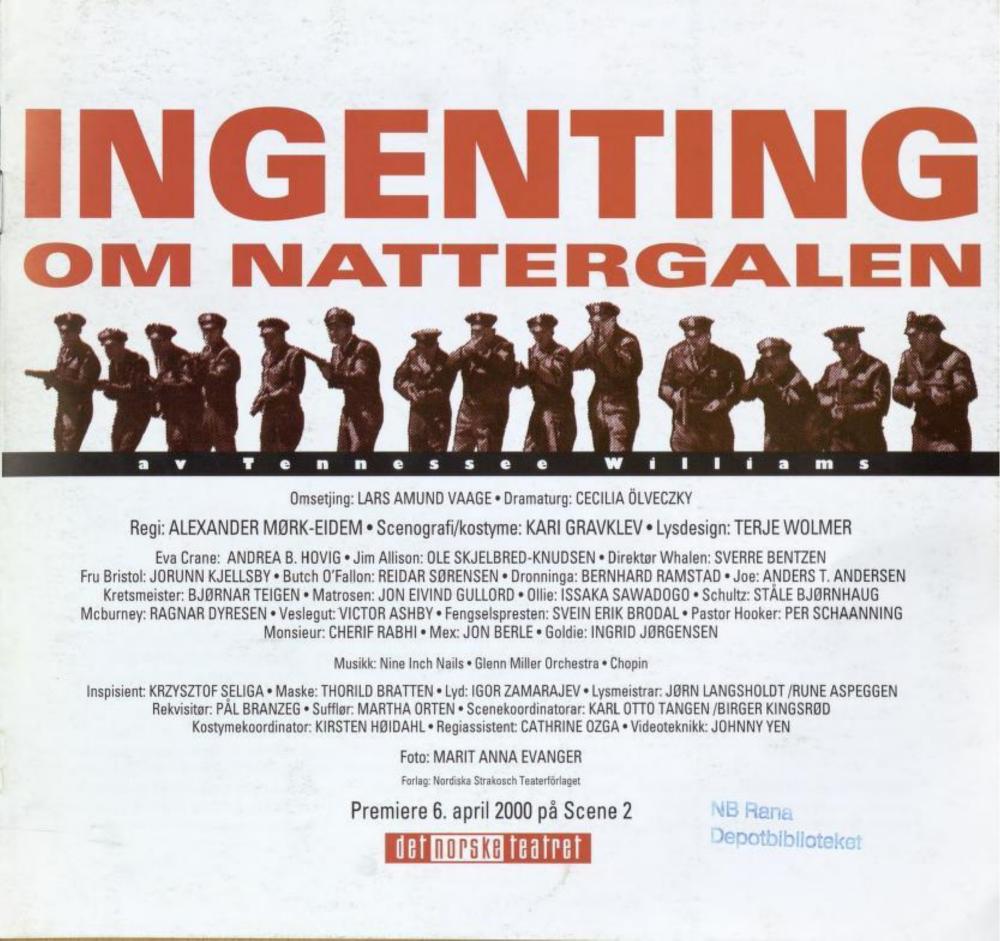 Program for Det Norske Teatrets produksjon "Ingenting om nattergalen" (2000)