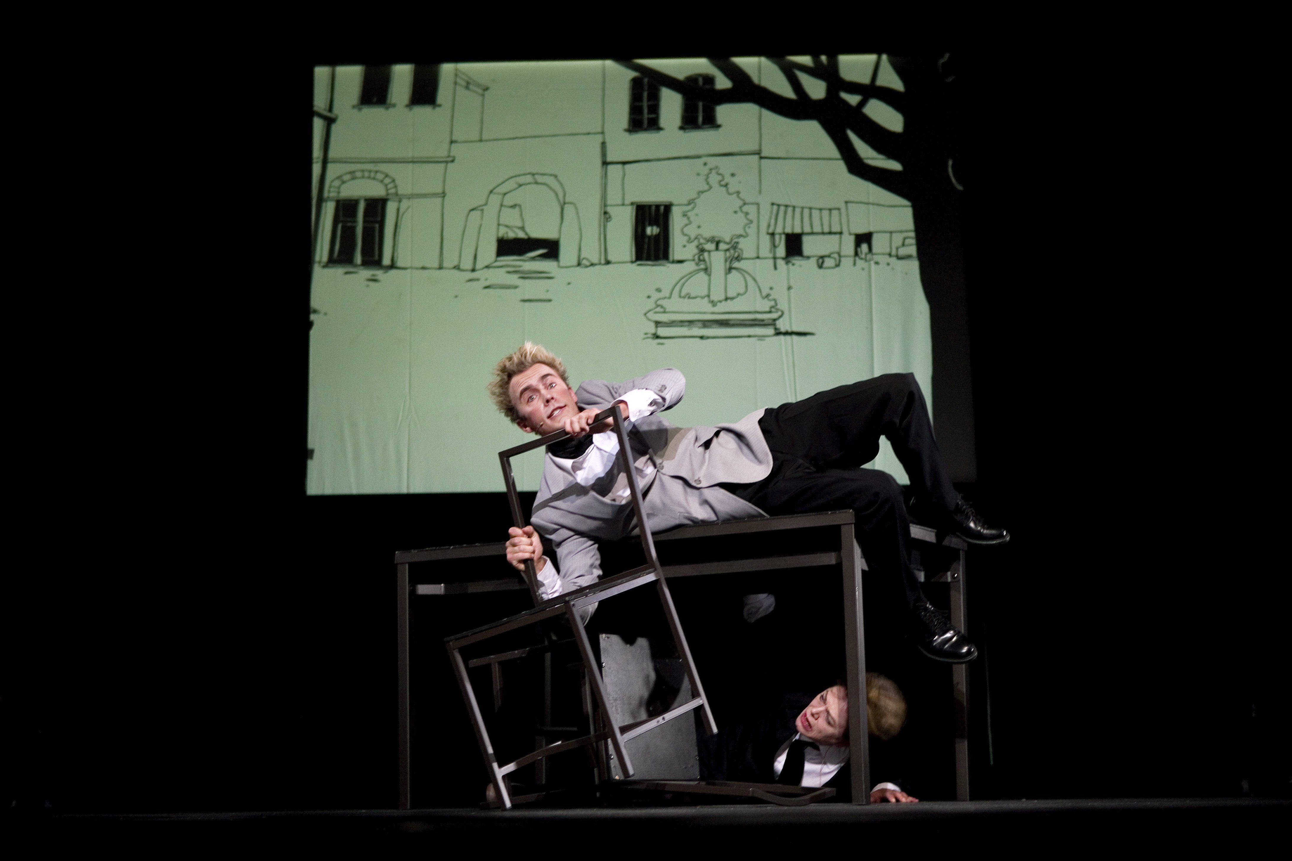 Fotografi fra Akershus Teaters produksjon De Siste Kloke på Terra Nova (2008)