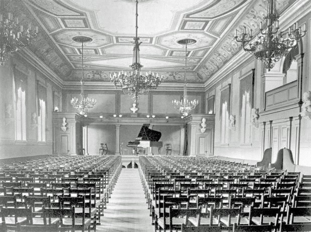 Fotografi fra Brødrene Hals' konsertlokale.
