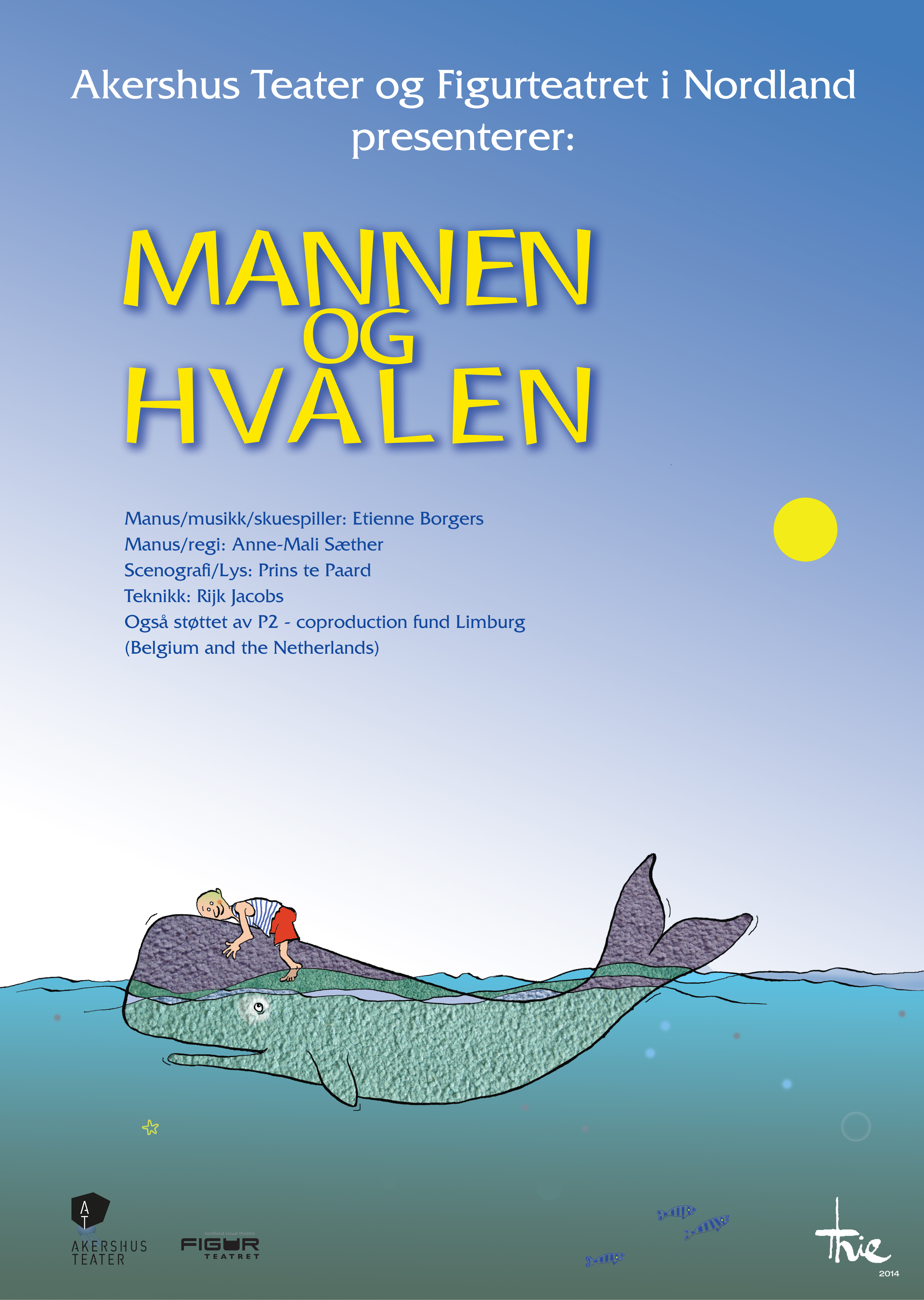 Plakat fra Akershus Teater, Figurteatret i Nordland og Etienne Borgers produksjon Mannen og hvalen (2015)