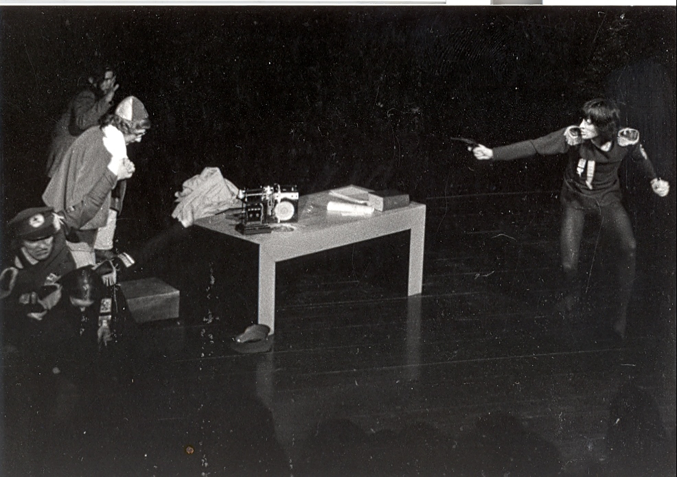 Fotografi fra Smugteatrets produksjon "En tilfeldig anarkists hendelige død" (1979)