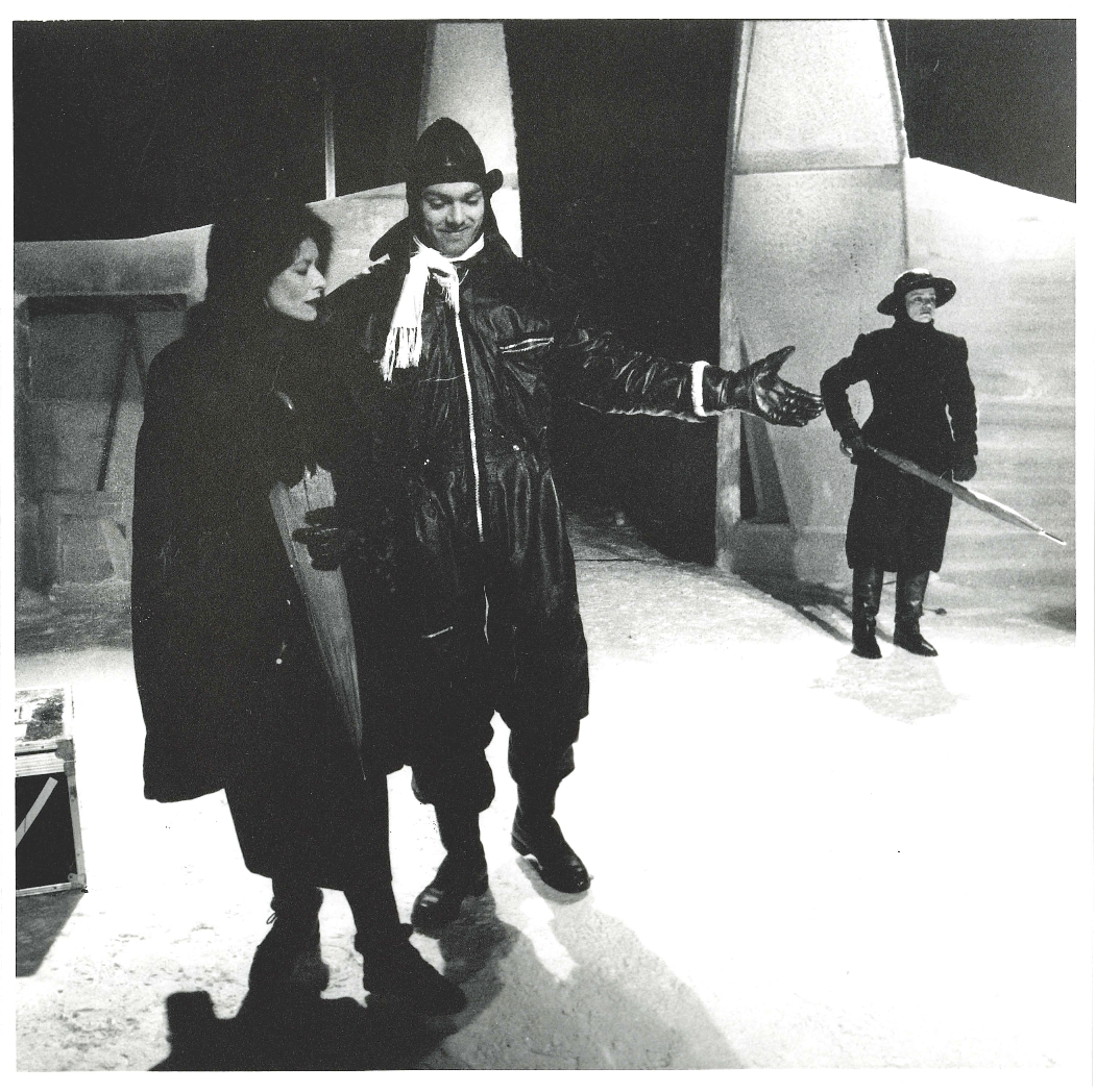 Fotografi fra samproduksjonen Sezuan (1991). Sezuan var et samarbeidsprosjekt mellom Studio Teater, Beaivvás Sámi Nasunálateáhter, Hålogaland Teater og Sampo Teater.