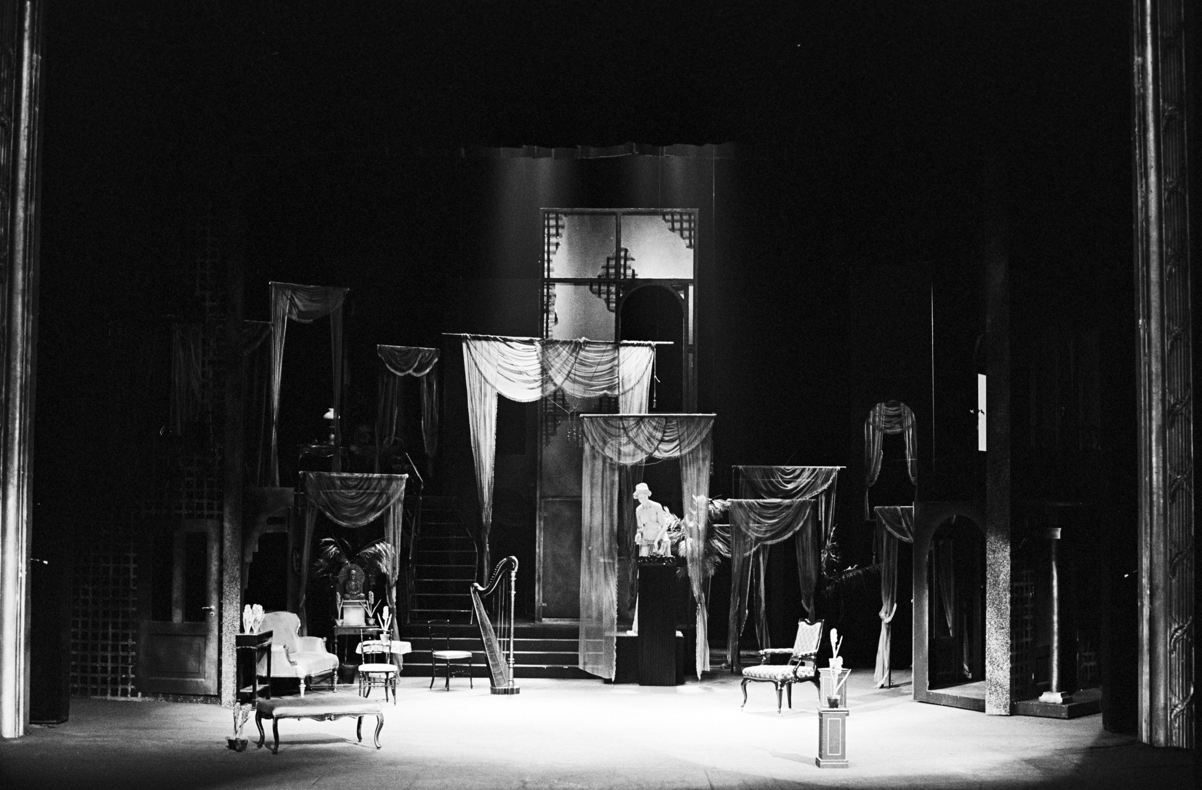 Fotografi av scenografien til Nationaltheatrets produksjon Spøksonaten (1972)