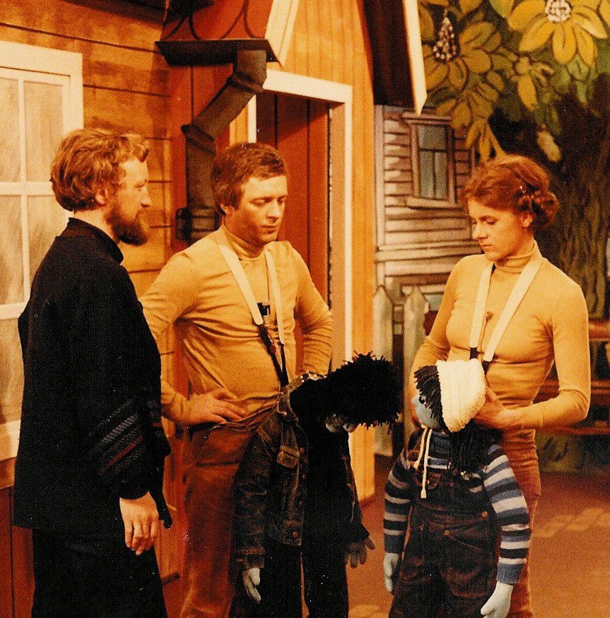 Fotografi fra studio under innspillingen av Musidra Teater og NRKs TV-produksjon Sella-re-atag (1981).