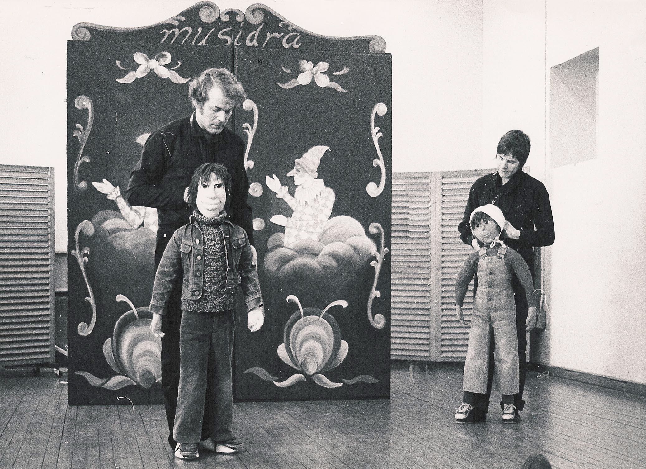 Fotografi fra Musidra Teaters teaterproduksjon Hjemmebarn og Fremmedbarn (1979). Av og med Musidra Teater.