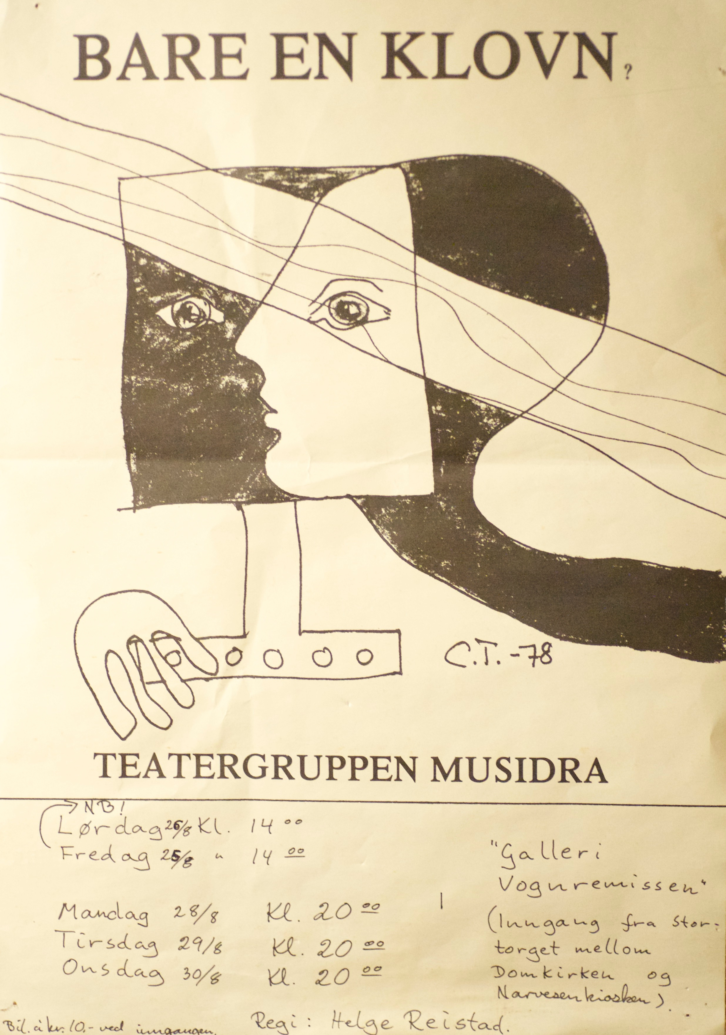 Plakat fra Musidra Teaters produksjon Bare en klovn? (1978).