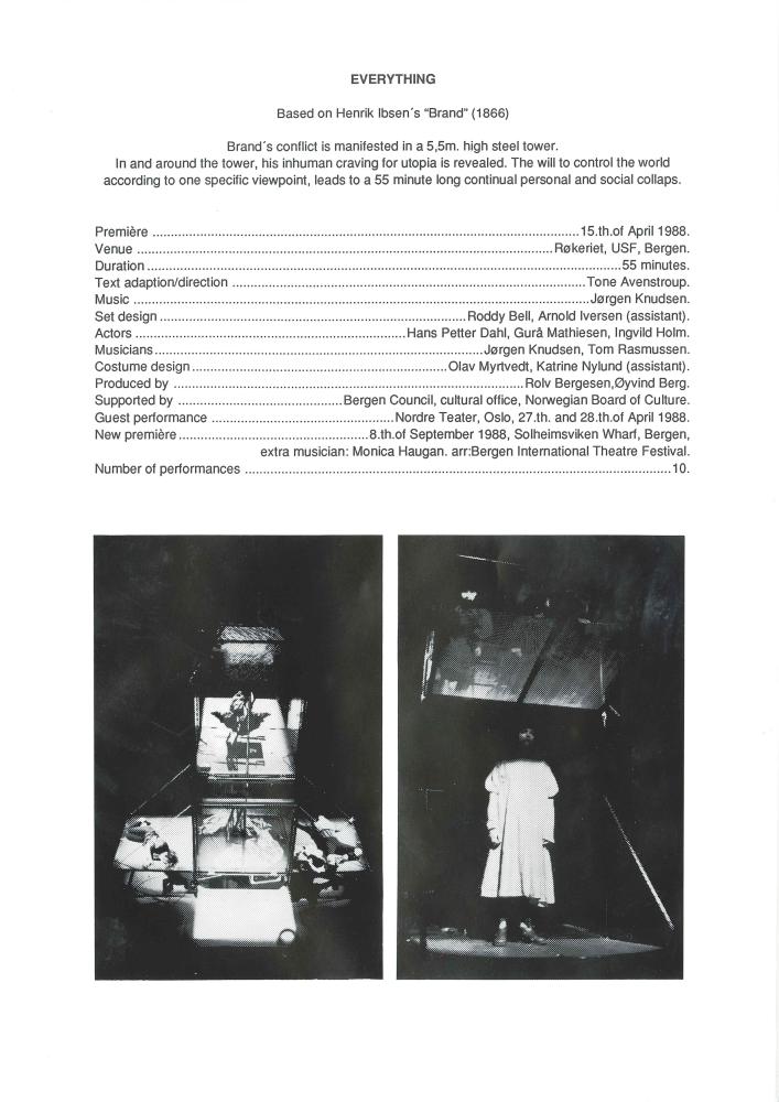 Spilloversikt over Baktruppens produksjon "Alt" (1988)