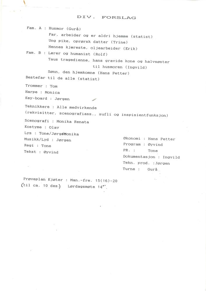 Notater i forbindelse med Baktruppens produksjon "Kjøter" (1989).