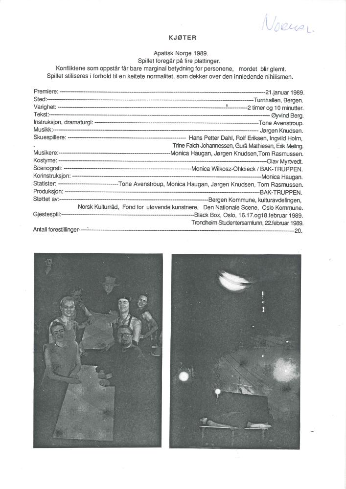 Informasjonsark til Baktruppens produksjon "Kjøter" (1989).