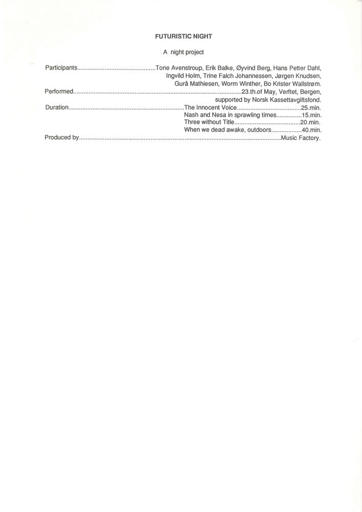 Informasjonsark i forbindelse med Baktruppens arrangement "Futuristisk natt" (1990).