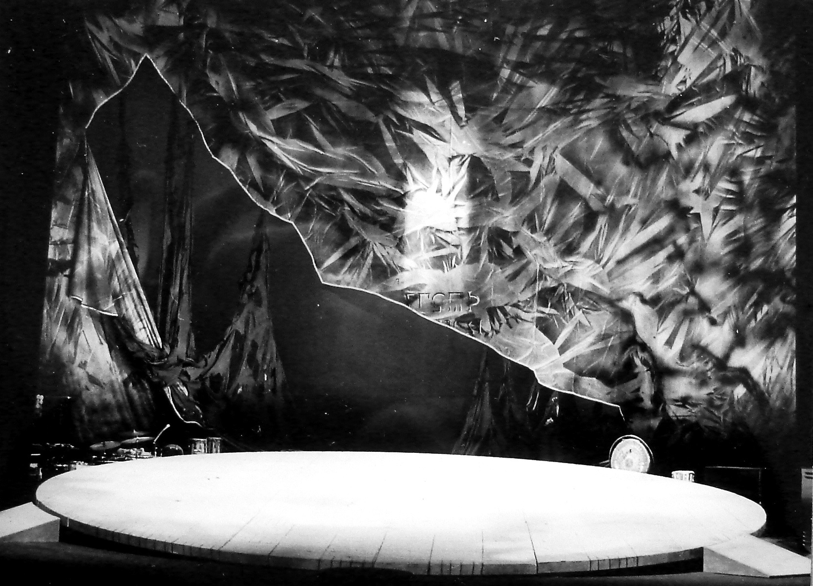 Fotografi av scenografien til Nationaltheatrets produksjon Bakkantinnene. (1973)