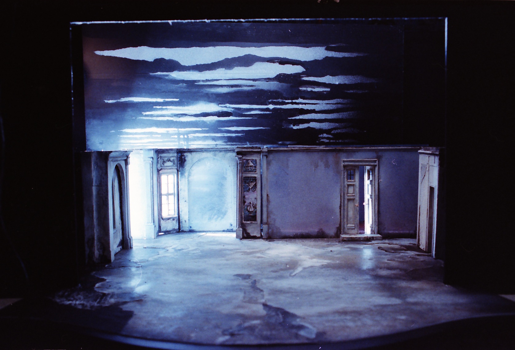 Fotografi av scenografimodellen til Nationaltheatrets produksjon Kirsebærhaven (1988)