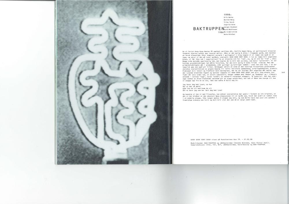Flygeblad i forbindelse med Baktruppens produksjon "Good Good Very Good" (1996)