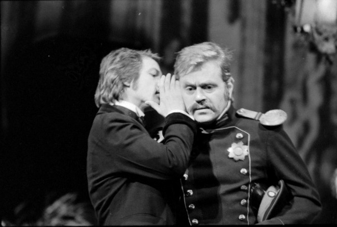 På bildet : Svein Sturla Hungnes (Nikolai Stavrogin) og Tor Stokke (Gaganov, offiser)