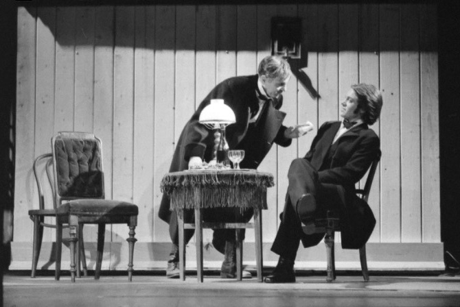 På bildet : Ukjent og Svein Sturla Hungnes (Nikolai Stavrogin)
