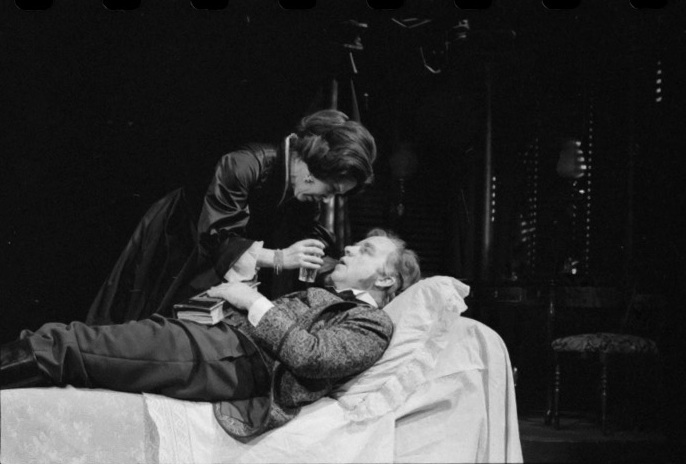 Fotografi av Nationaltheatrets produksjon De besatte (1975)