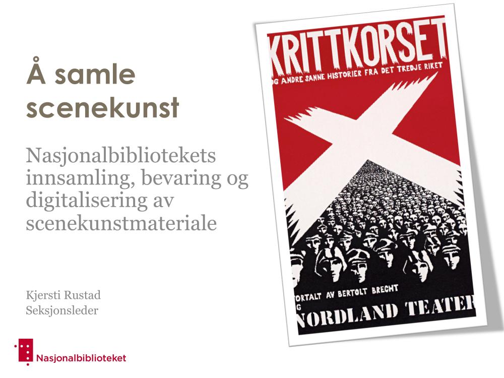 Nasjonalbiblioteket - om innsamling, bevaring og digitalisering av scenekunstmateriale. Foredrag av Kjersti Rustad, seksjonsleder Nasjonalbiblioteket.