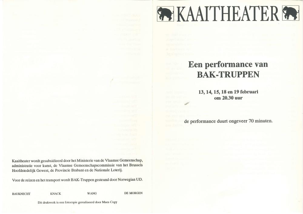 Flygeblad av Baktruppens produksjon " " (1991).