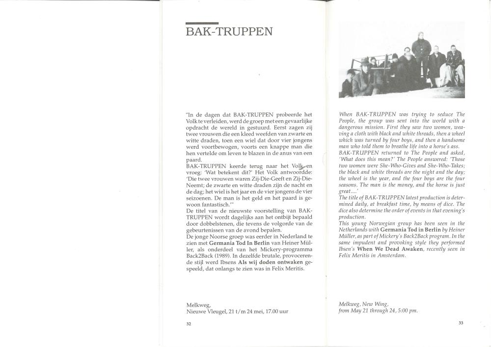 Omtale av Baktruppens produksjon " " (1991).
