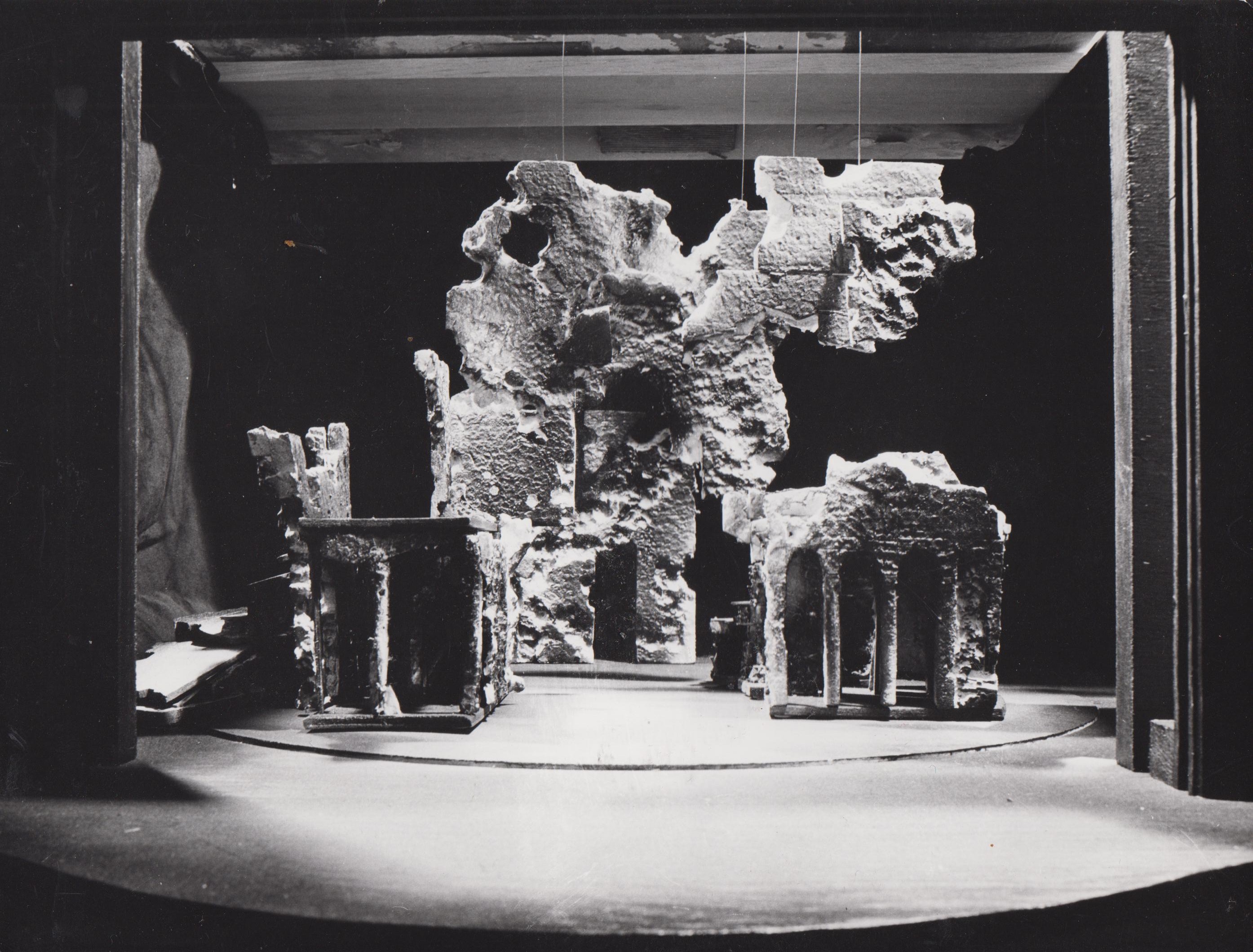 Fotografi er av scenografimodellen til Nationaltheatrets oppsetning av Ibsens Catilina (1976). Produksjonen hadde premiere 2. februar, 1976 og var satt opp på Nationaltheatrets Hovedscene .