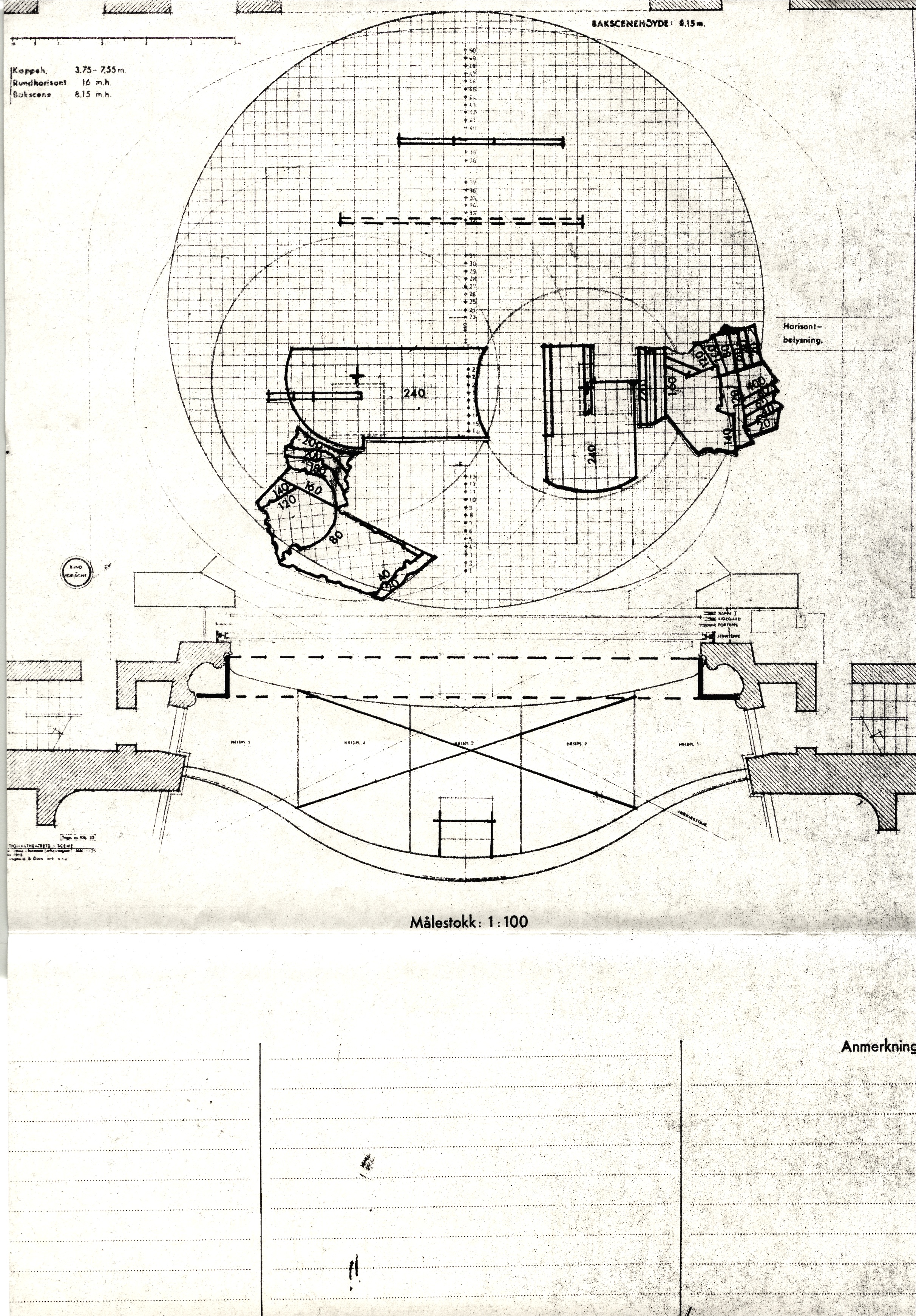 Teknisk tegning av scenografien til Nationaltheatrets produksjon Catilina (1976)