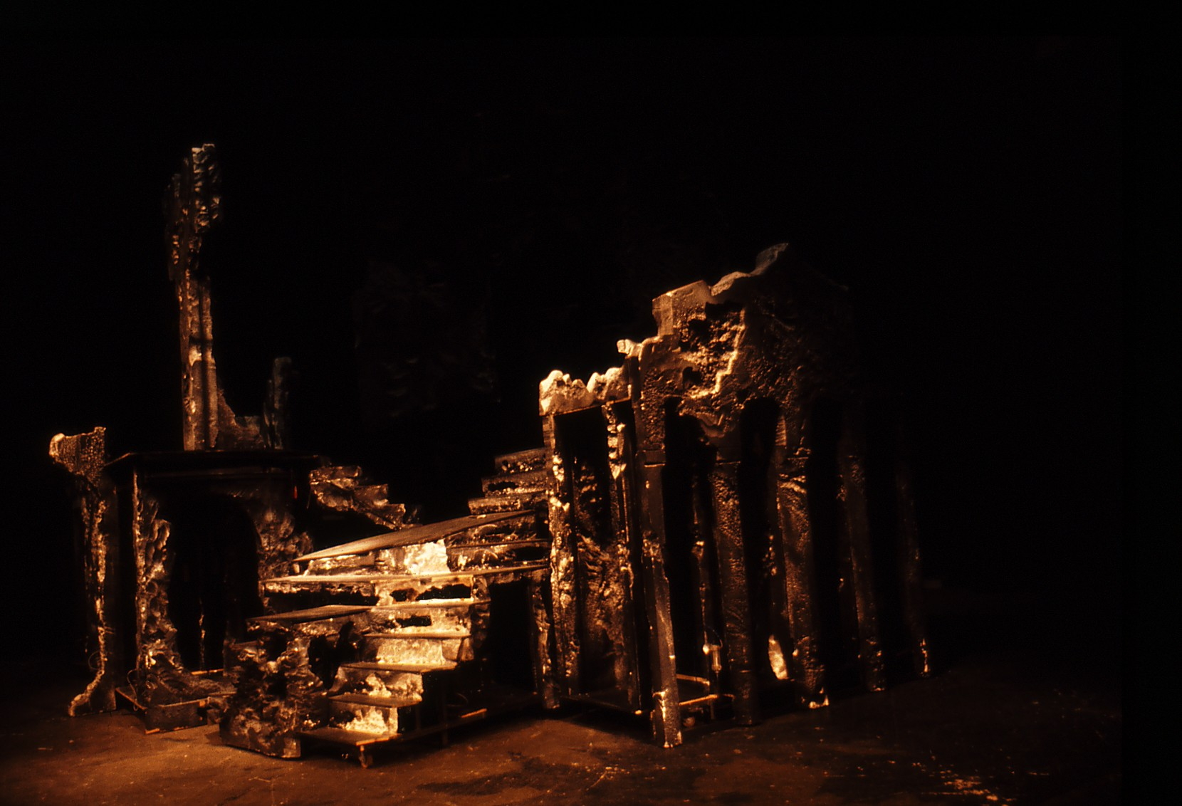 Fotografi er av scenografien til Nationaltheatrets oppsetning av Ibsens Catilina (1976). Produksjonen hadde premiere 2. februar, 1976 og var satt opp på Nationaltheatrets Hovedscene .