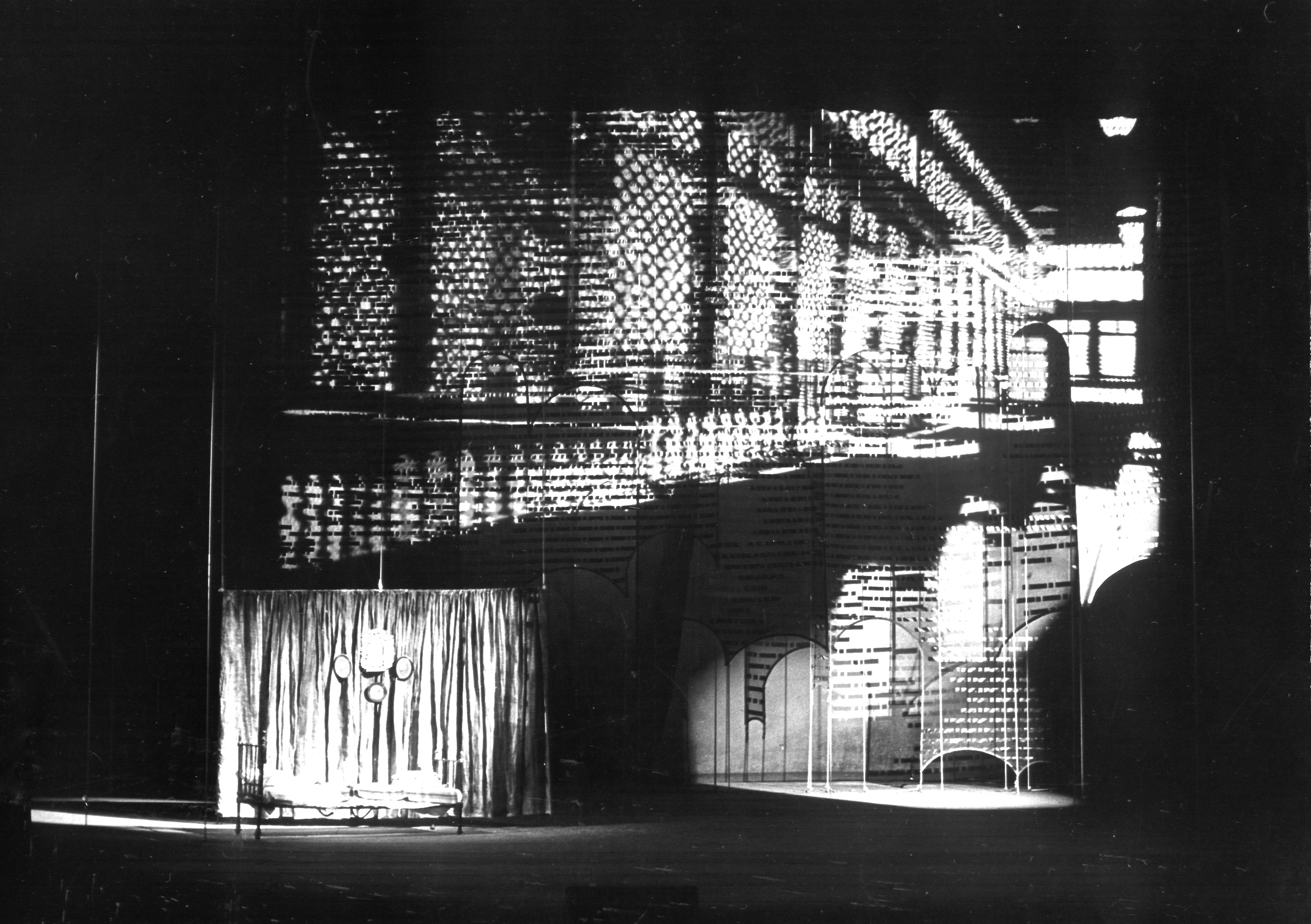 Fotografien er av scenografien til Nationaltheatrets oppsetning av William Shakespeares Helligtrekongersaften (1976). Produksjonen hadde premiere 2. september 1976.