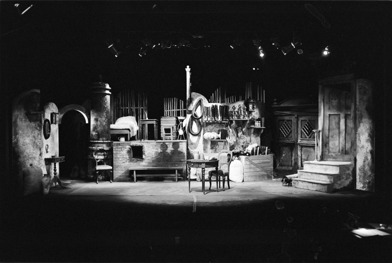 Fotografi av scenografien til Riksteatrets oppsetning av Nikolaj Gogols Revisoren (1977).