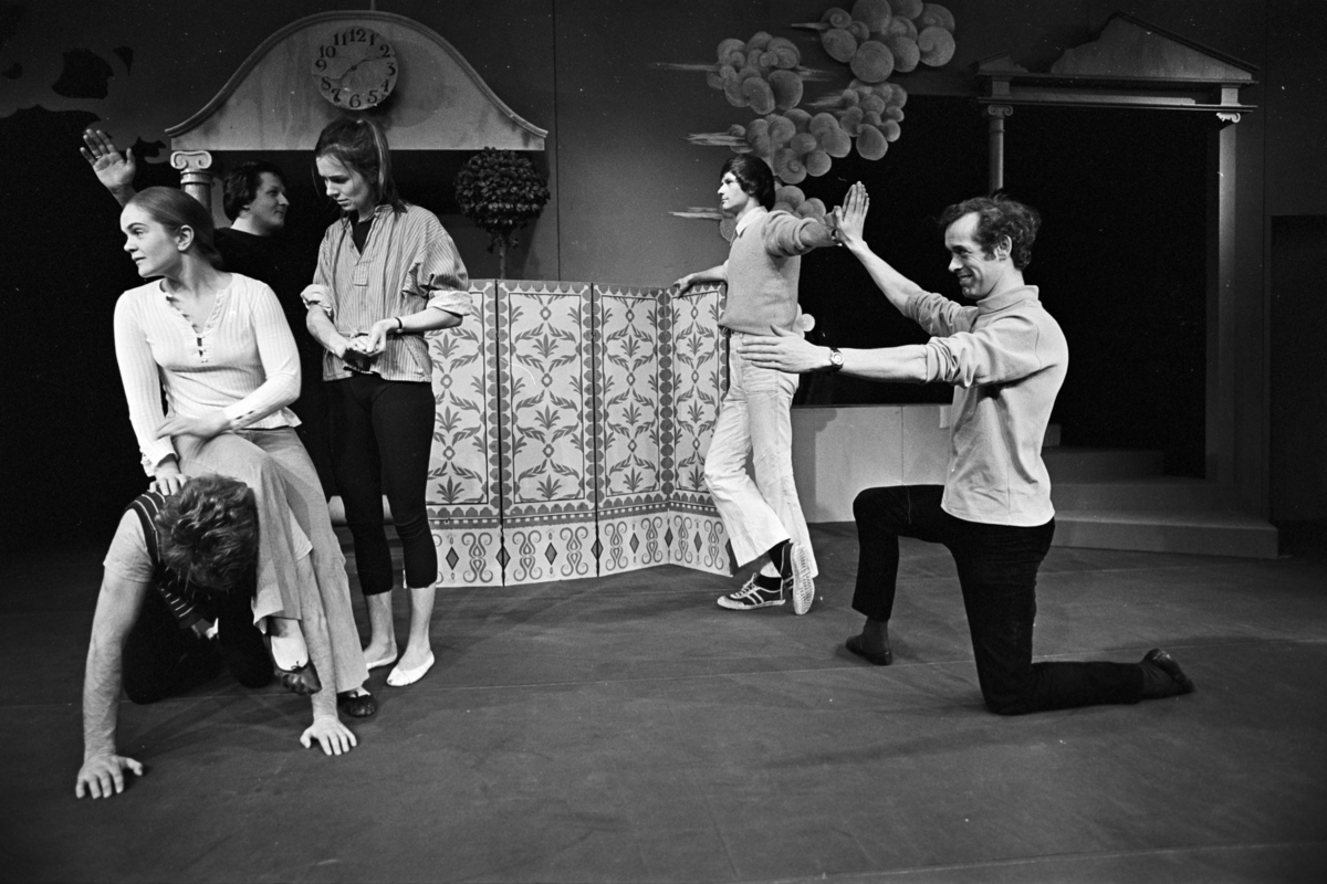 Fotografi fra prøvene til Nationaltheatrets produksjon Leonce og Lena (1972)