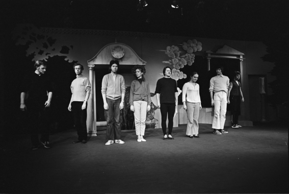 Fotografi fra prøvene til Nationaltheatrets produksjon Leonce og Lena (1972)