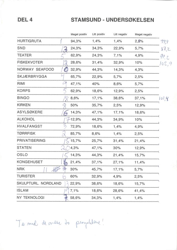 Resultat fra Stamsundundersøkelsen del 4 - i forbindelse med Baktruppens performance "Stamsundundersøkelsen & Turisten" (2003).