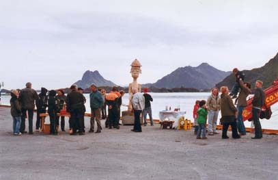 Fotografi av Baktruppens performance "Stamsundundersøkelsen & Turisten" (2003/2004)