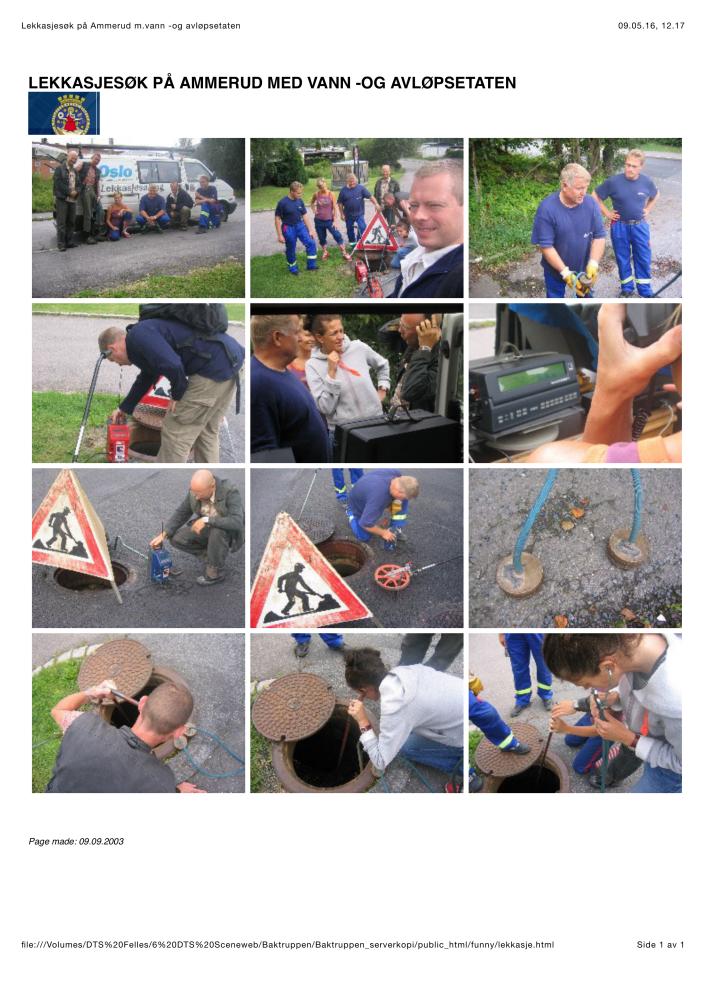 Bildemontasje av lekasjesøk på Ammerud med Vann- og avløpsetaten i forbindelse med Baktruppens produksjon "Funny" (2003)