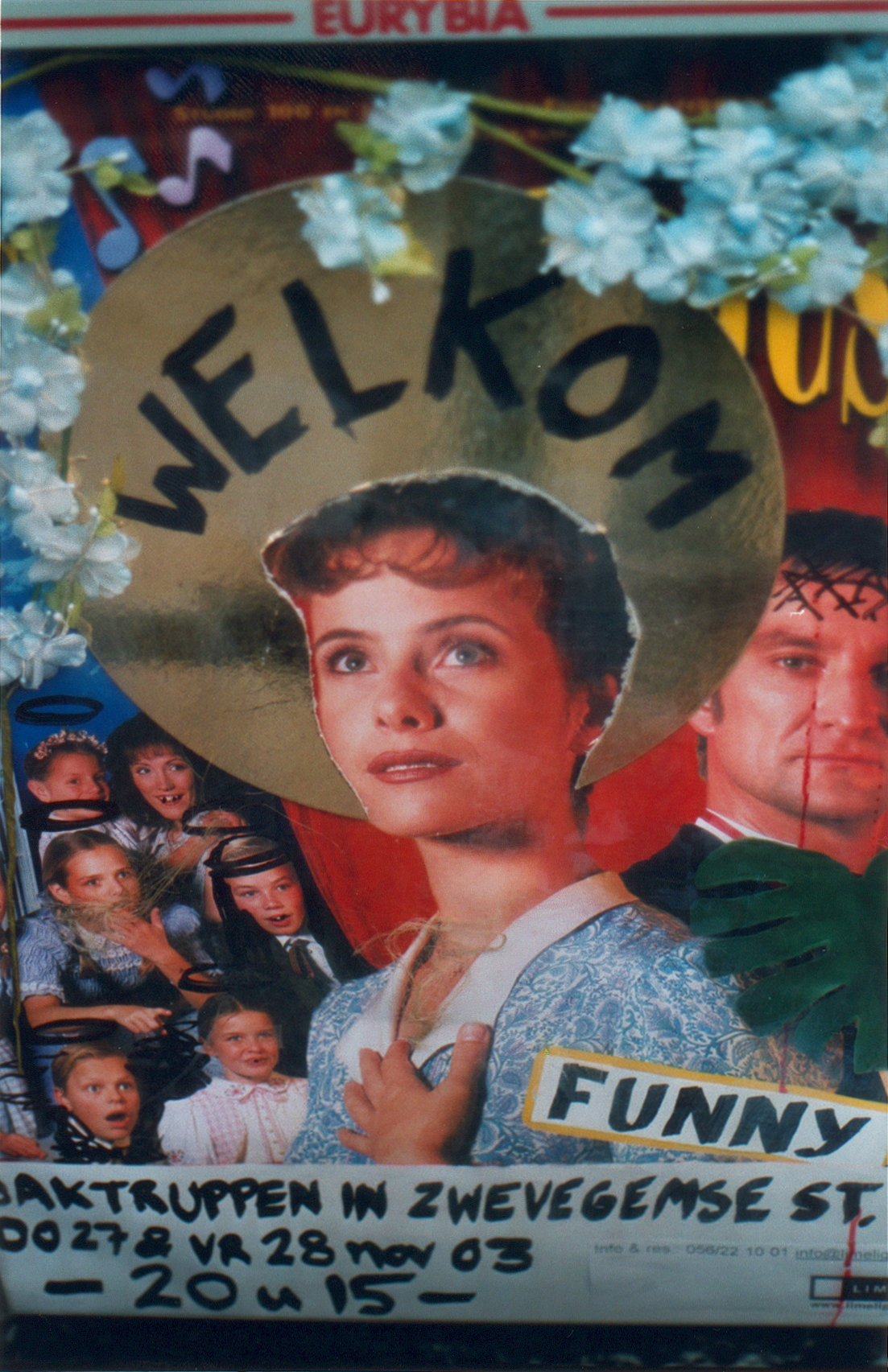 Foto fra plakaten i forbindelse med Baktruppens produkjson FUNNYSORRYJESUS (2003)