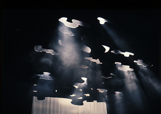 Fotografi av Lubos Hruzas scenografi til Nationaltheatrets oppsetning Brand (1978). Bildet er fra en av prøvene.
