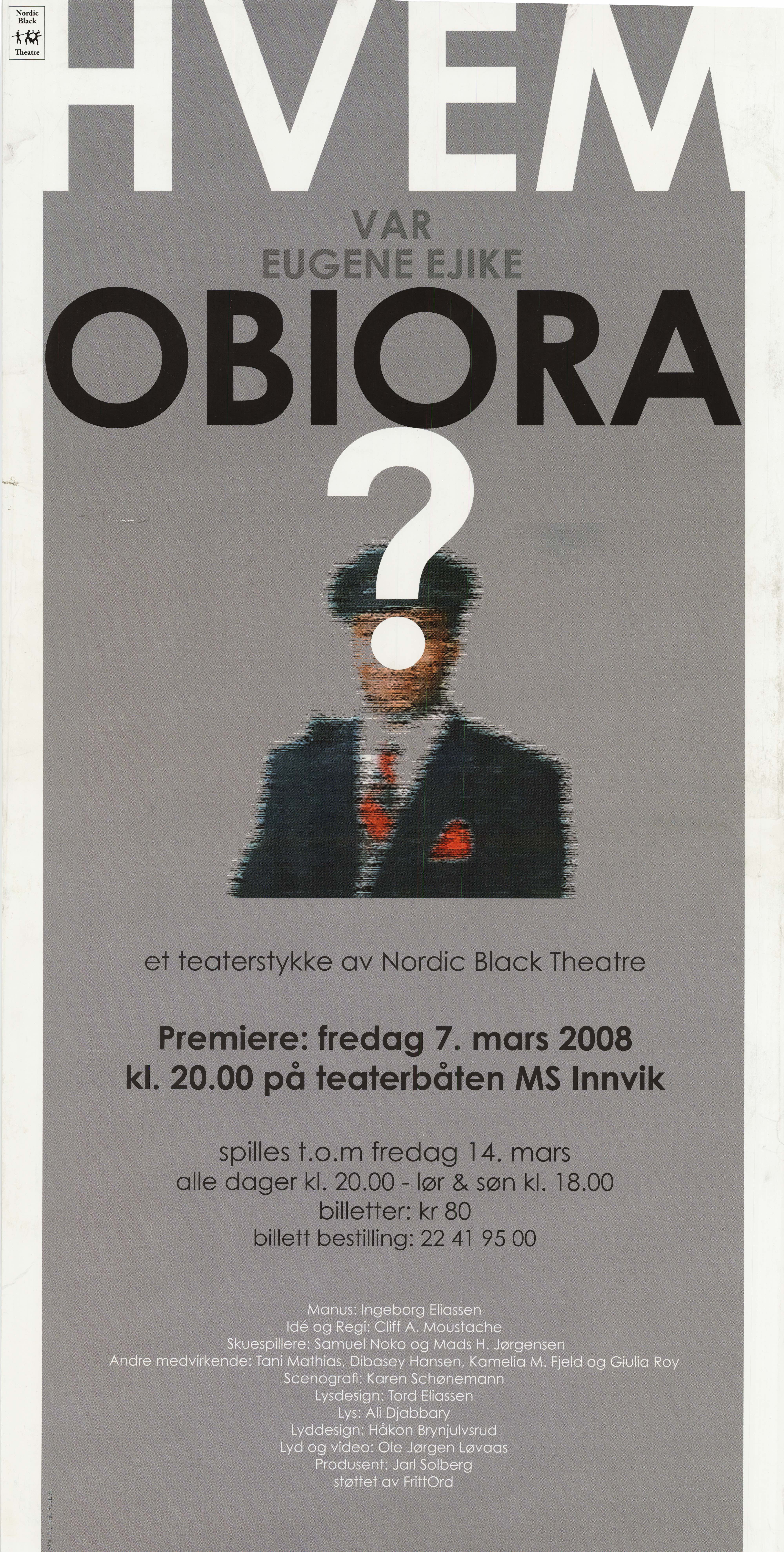 Plakat for Nordic Black Theatres produksjon Hvem var Eugene Ejike Obiora? (2008).
