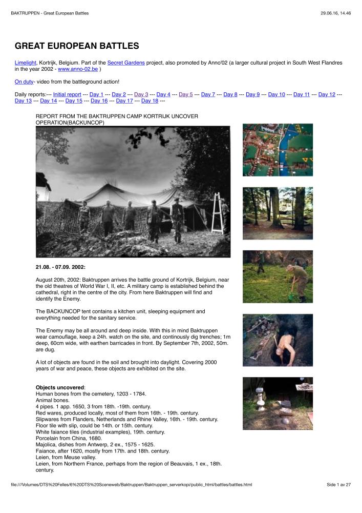 Informasjon om Baktruppens produksjon "Great European Battles" (2002) publisert på Baktruppens nettside: http://baktruppen.bek.no