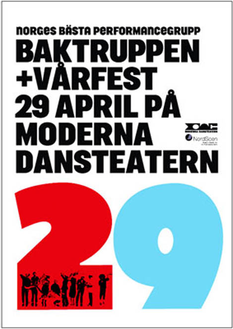 Flyer fra Moderna Dansteatern i forbindelse med gjestspill av Baktruppen