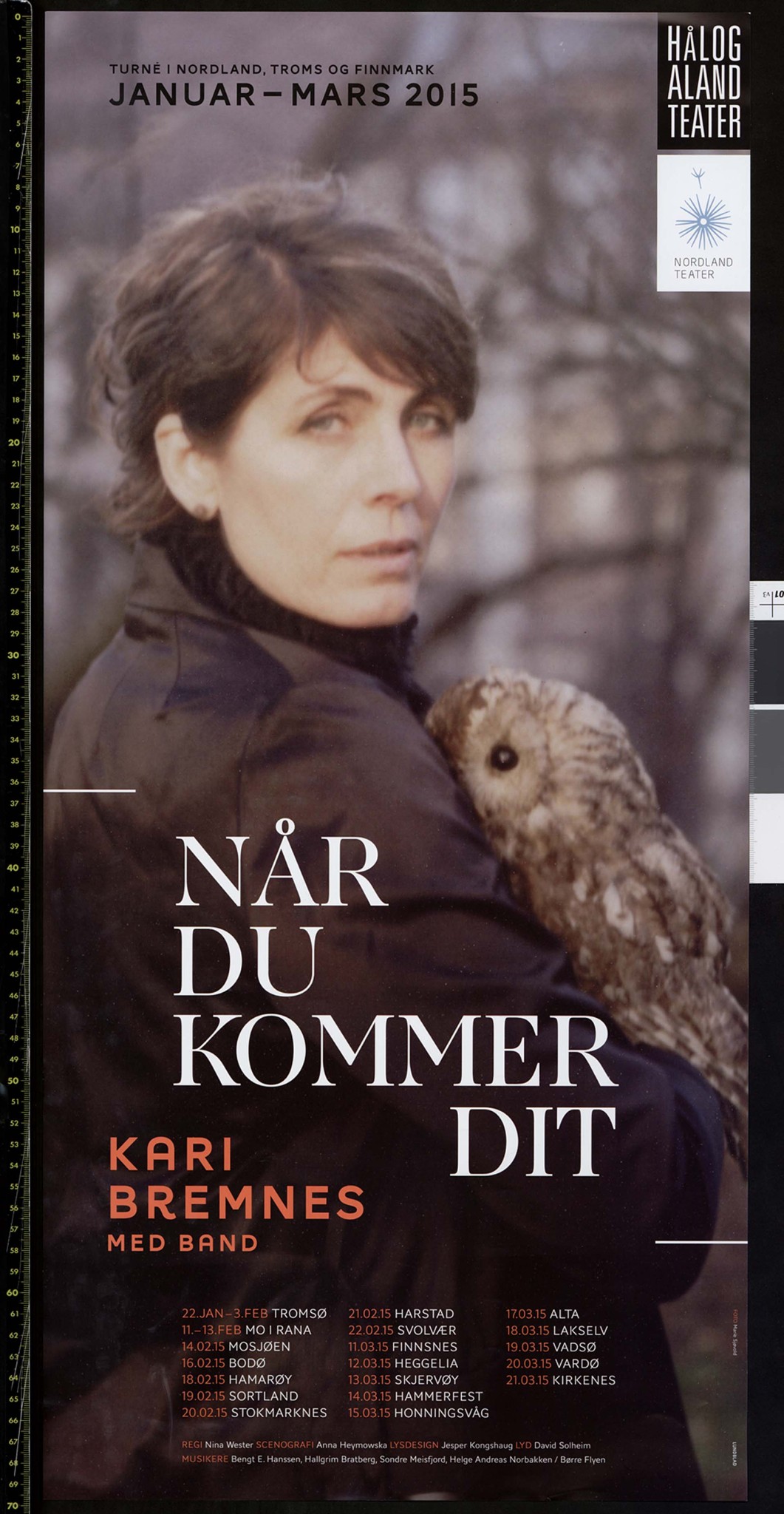 Plakat for turné for Kari Bremnes, Hålogaland Teater og Nordland Teaters produksjon Når du kommer dit (2015).