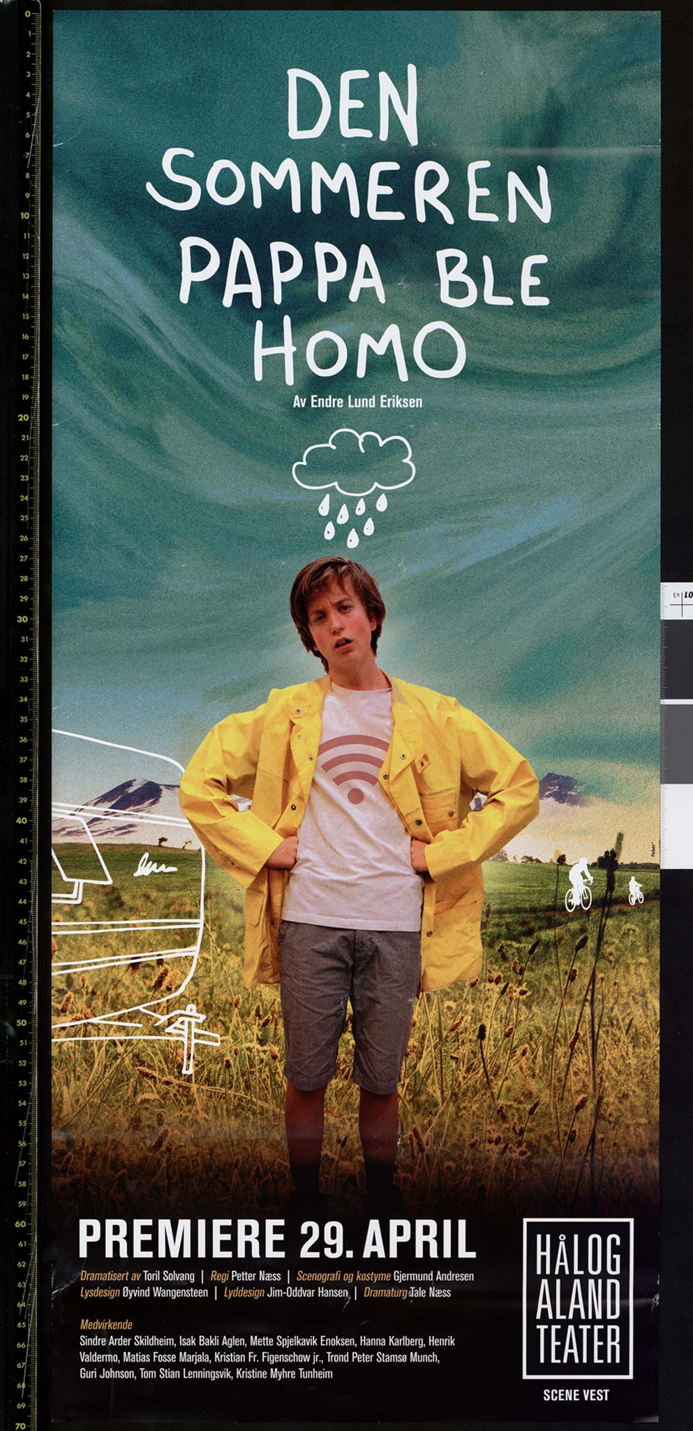 Plakat for Hålogaland Teaters produksjon Den sommeren pappa ble homo (2015).