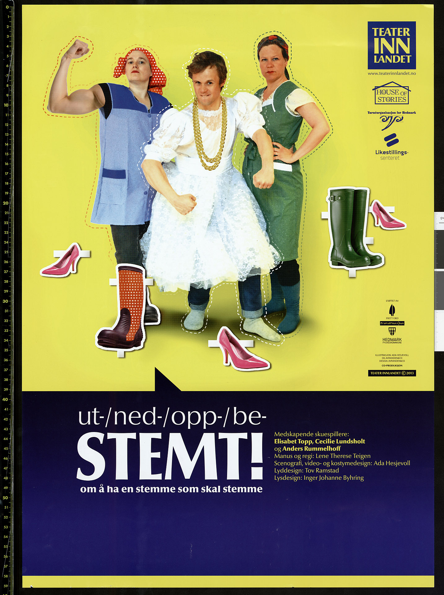 Plakat for House of Stories og Teater Innlandets produksjon ut-/ned-/opp-/be-STEMT. om å ha en stemme som skal stemme (2013)