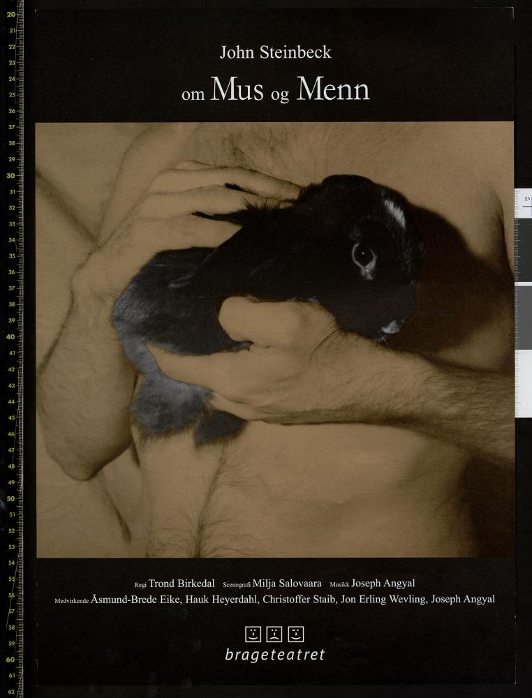 Forestillingsprogram for Brageteatrets produksjon Om mus og menn (2003).