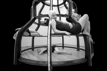 Fotografi fra Lisbeth Rønnings sceneopplevelsers produksjon Portrett av fem kvinner i en badstu.
