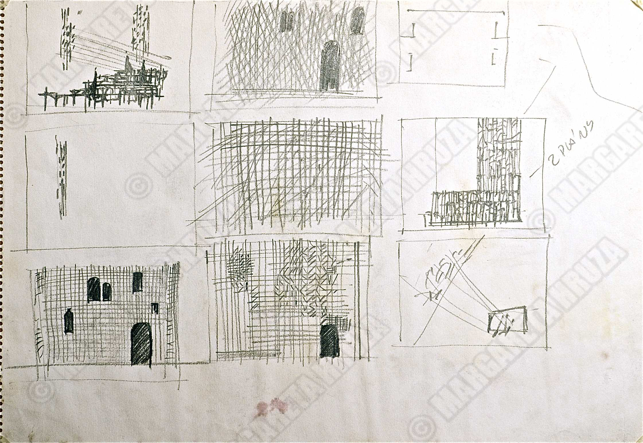 Skissse av Lubos Hruza til Nationaltheatrets Kong Lear (1971). Skissen viser en mulig idé for scenografien.