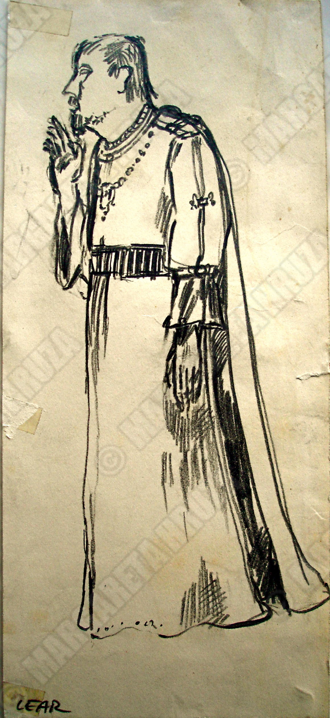 Kostymetegning av Lubos Hruza for Nationaltheatrets Kong Lear (1971). Kostymet var tegnet for Georg Løkkeberg i rollen som Kong Lear.