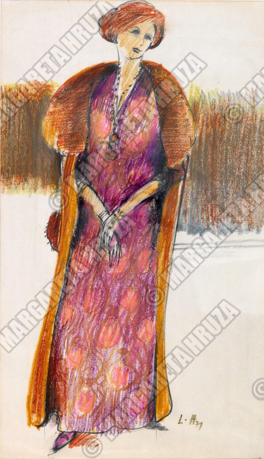 Kostymetegning av Lubos Hruza til Monna Tandberg i rollen som Jelena Andre Jevna i Onkel Vanja(1977) av Anton Tsjekhov. Premiere var 3. mars 1977, på Nationaltheatrets hovedscene.