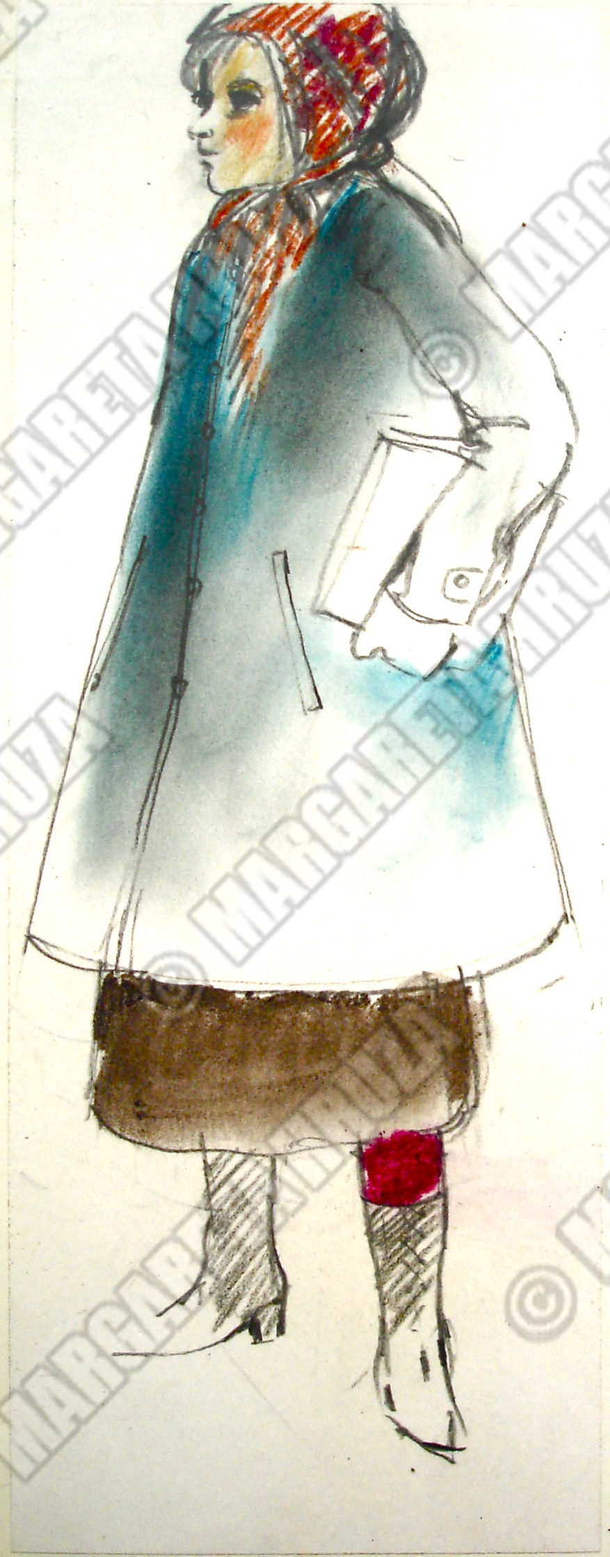 Kostymetegning av Lubos Hruza til Torild Jacobsen i rollen som Frida Foldal i John Gabriel Borkman (1980) av Henrik Ibsen. Teaterproduksjon hadde premiere 8. mars, 1980 på Hovedscenen på Den Nationale Scene.