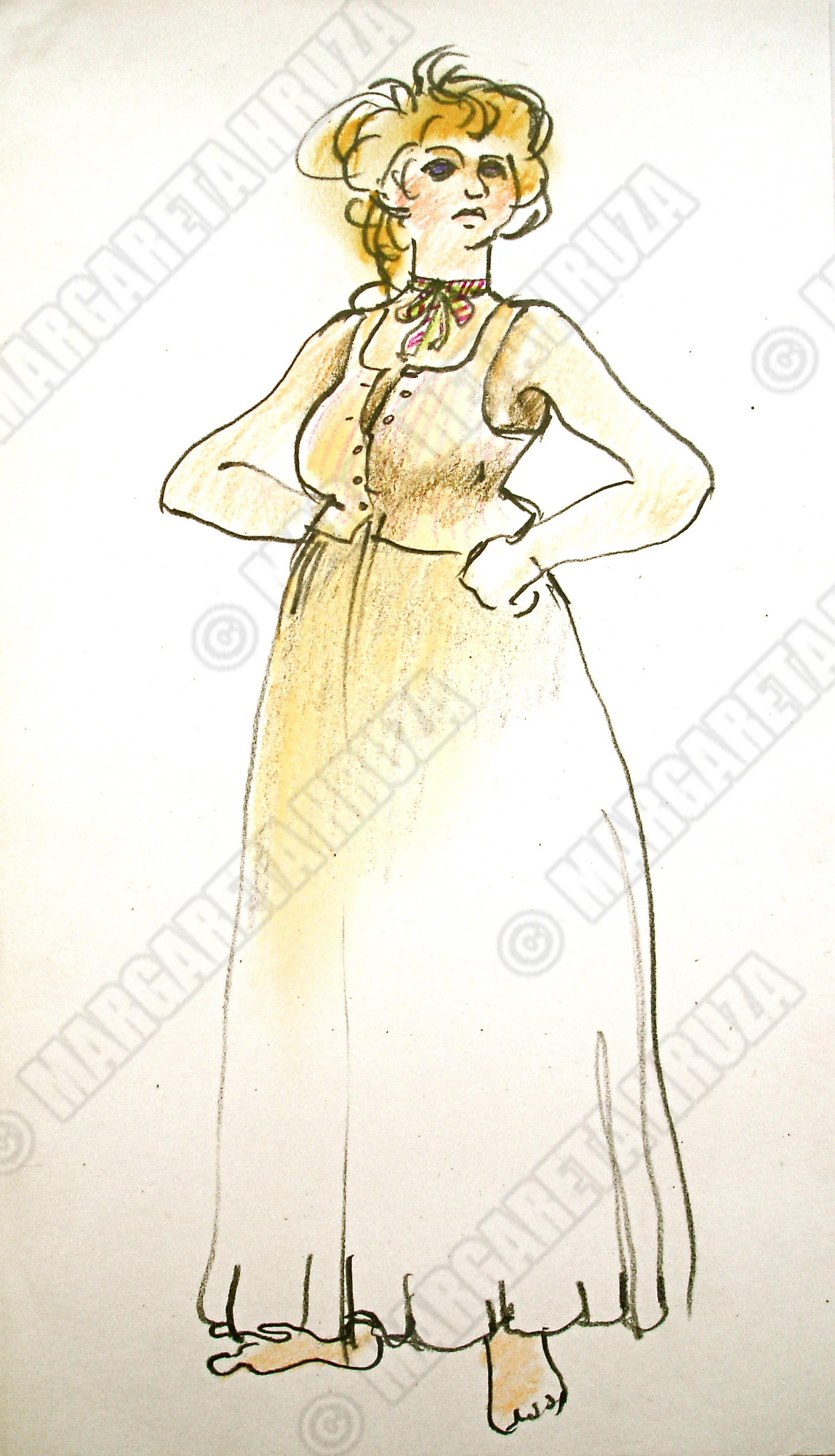 Kostymetegning av Lubos Hruza til Rogaland Teaters Jeppe på Berget (1978). Kostymet ble brukt av Gretelill Tangen i rollen som Nille.