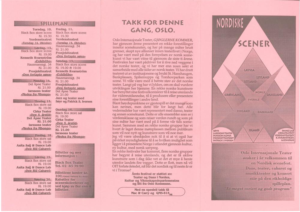 Program for teaterfestivalen Oslo Internasjonale Teater. Gjøglerne kommer 1991