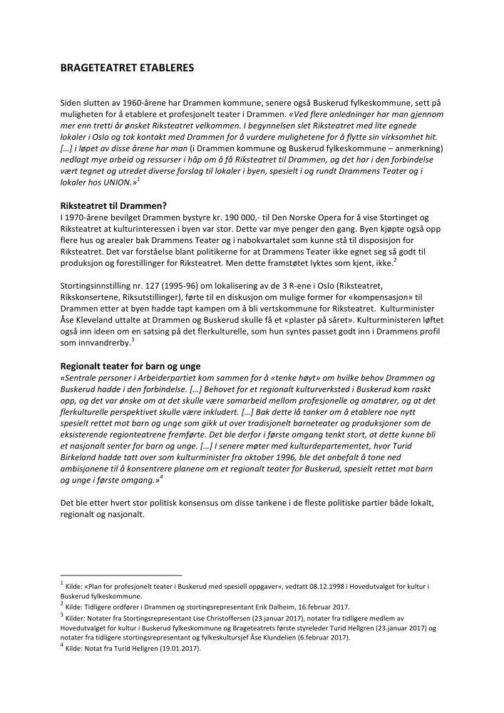 Artikkel fra 2017 av Terje Hartviksen om prosessene bak etableringen av Brageteatret i Drammen